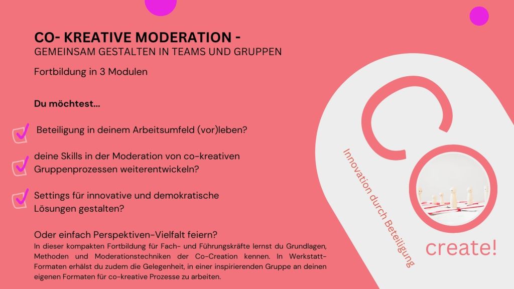 Leidenschaftlich gerne gebe ich Fortbildungen. Am liebsten an schönen Orten wie den Akademien für Kulturelle Bildung in Remscheid oder Wolfenbüttel. Und am liebsten mit viel Raum und Zeit für gemeinsame Entwicklungen.